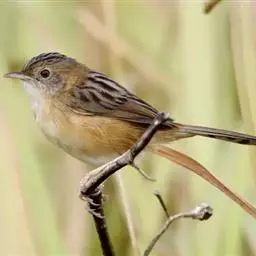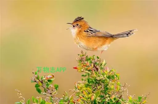 金头扇尾莺体小而具褐色纵纹的莺。嘴细长,略向下弯;翼短,体型娇小,尾长。下体皮黄,喉近白,尾深褐,…
