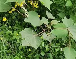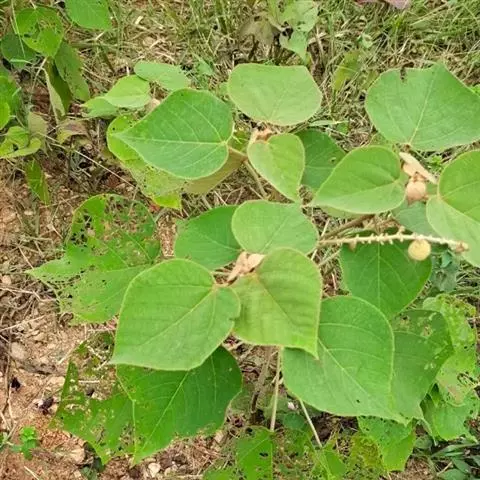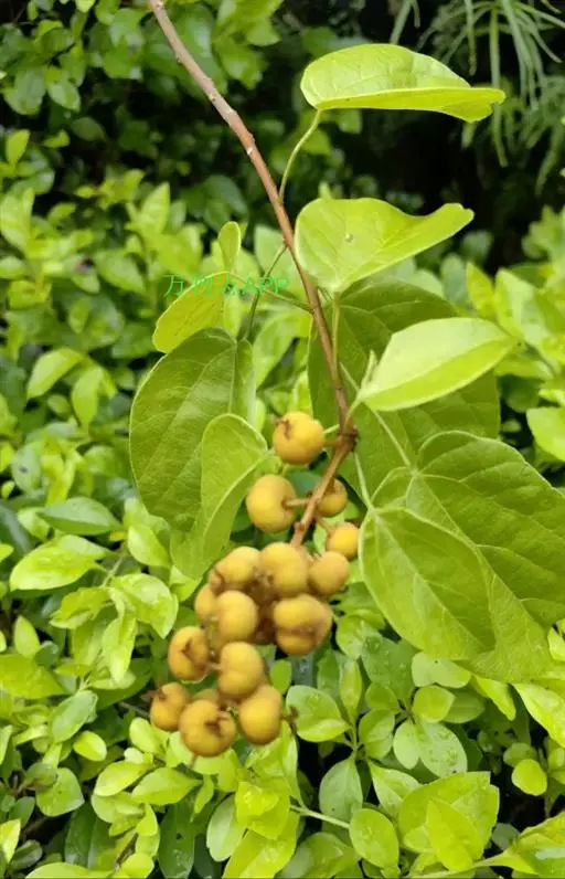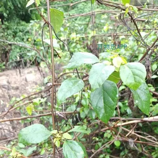 攀缘状灌木;嫩枝、叶柄、花序和花梗均密生黄色星状柔毛;老枝无毛,常有皮孔叶互生,纸质或膜质,卵形或椭圆状卵形,长3.5-8厘米,宽2.5-5厘米,顶端急尖或渐尖,基部楔形或圆形,边全缘或波状,嫩叶两面均被星状柔毛,成长叶仅下面叶脉腋部被毛和散生黄色颗粒状腺体;基出脉3条,有时稍离基,侧脉4-5对;叶柄长2-6厘米。