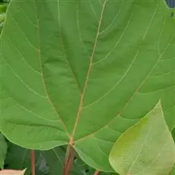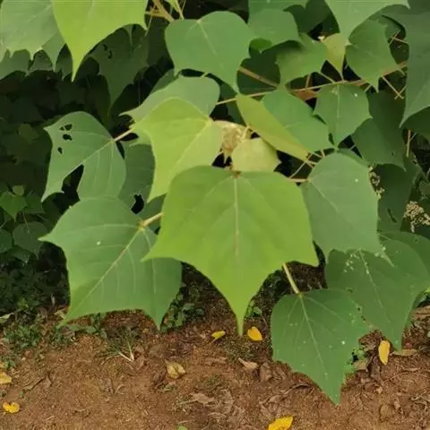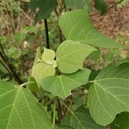 本变种的叶阔心形,长8-19厘米,宽6-13厘米,被柔毛或无毛;雌花序长4-5厘米,粗壮,具花8-12朵;蒴果具2 (-3)个分果爿。花果期5-8月。