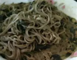 1、用5%的盐水和荞麦面,压成面条以后备用。