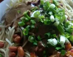 主料:牛肉(排骨肉或腱子肉)、葱白、大蒜、荞麦面条(冷面--此面条为特制,除了徐州地区,其他地方很难购到,生面直接煮会变粘而失去口感,必须用冷水泡至较柔软再烫)、香菜