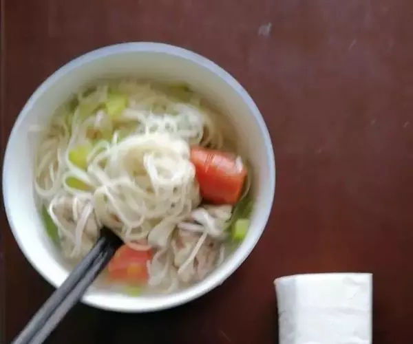 吃时用筷子将面团均匀挑开,先喝汤,然后再吃。