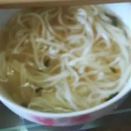 3.准备好面码儿和面汤后,把冷面放入沸水中烫软,直到面条筋道(一般6至10秒)。