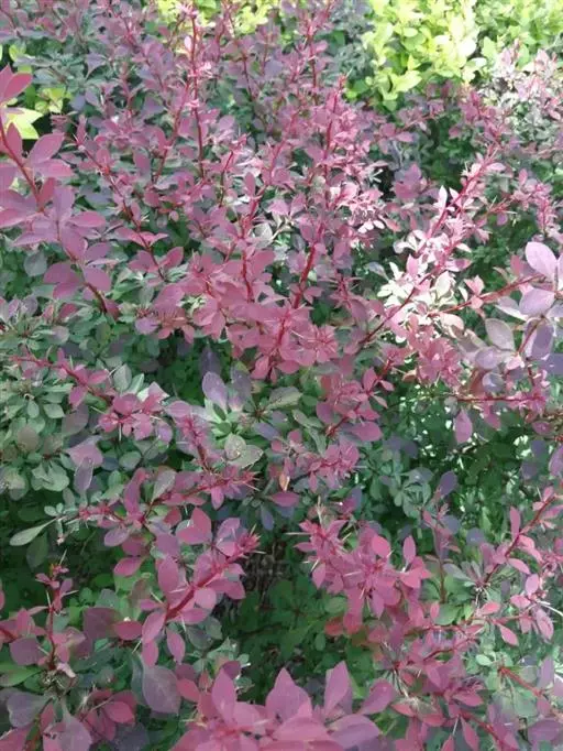 紫叶小檗(学名:Berberis thunbergii var. atropurpurea Chenault),别名:红叶小檗,小檗科、小檗属。原产于中国东北南部、华北及秦岭。多生于海拔1000米左右的林缘或疏林空地。落叶灌木,枝丛生,幼枝紫红色或暗红色,老枝灰棕色或紫褐色。叶小全缘,菱形或倒卵,紫红到鲜红,叶背色稍淡。4月开花,花黄色。果实椭圆形,果熟后艳红美丽。