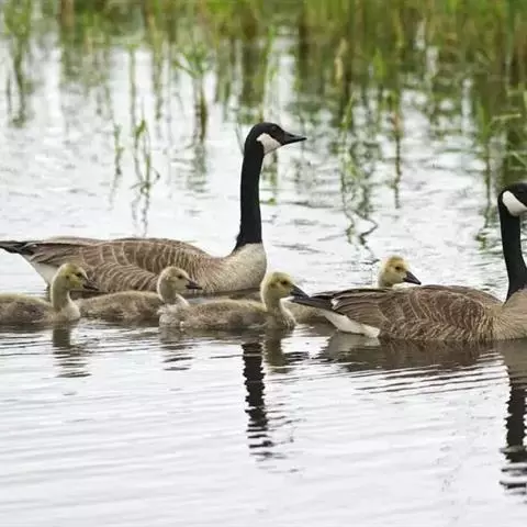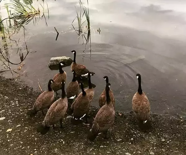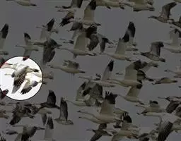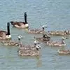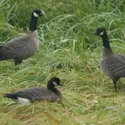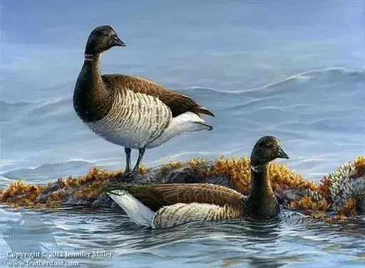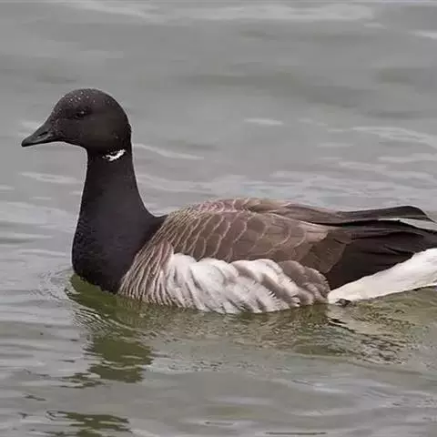 黑雁(学名:Branta bernicla)体长56-61厘米,翼展110-120厘米,体重1100-1700克 ,寿命13年。是中等体型的深灰色雁。嘴和脚黑,尾下羽白色。灰色的颈部两侧具特征性白色图纹,有时在前颈形成半领。胸侧多近白色纹。雏鸟颈部无白斑,但翅上多白色横纹。为典型的冷水性海洋鸟,耐严寒,喜栖于海湾、海港及河口等地。少与其他种类混群。近水面低飞,涨大潮时栖于沿海港湾。觅食于沿海草场。主要以青草或水生植物的嫩芽、叶、茎等为食,也吃根和植物种子,冬季有时还吃麦苗等农作物的幼苗。迁徙时常集成大群,白天飞翔,傍晚降落到湖泊等水域休息和觅食,常常发出高叫声,极为嘈杂。分布于北极圈以北、北冰洋沿岸及其附近岛屿。冬季迁到中国东北及东部沿海地区,最南至福建沿海和台湾,在中国为冬候鸟。