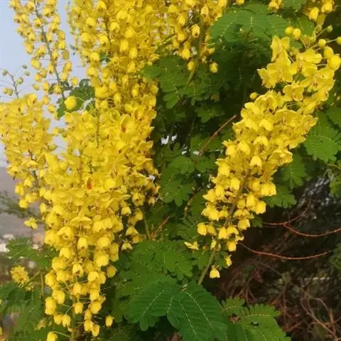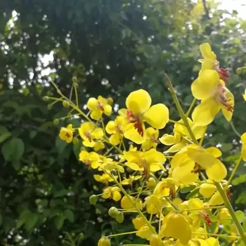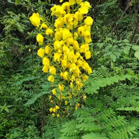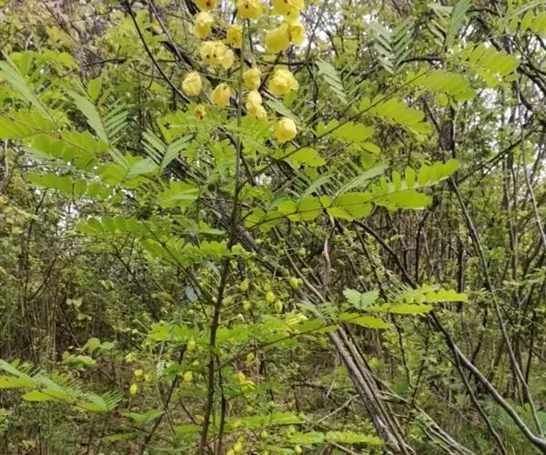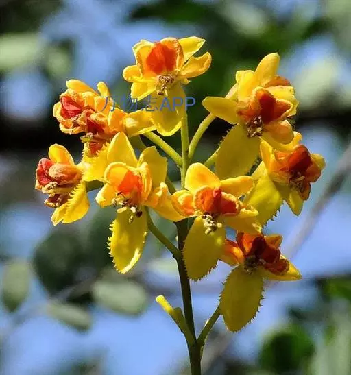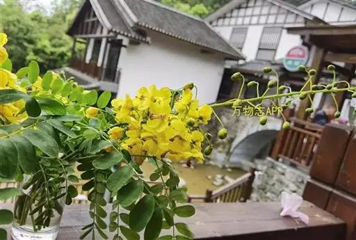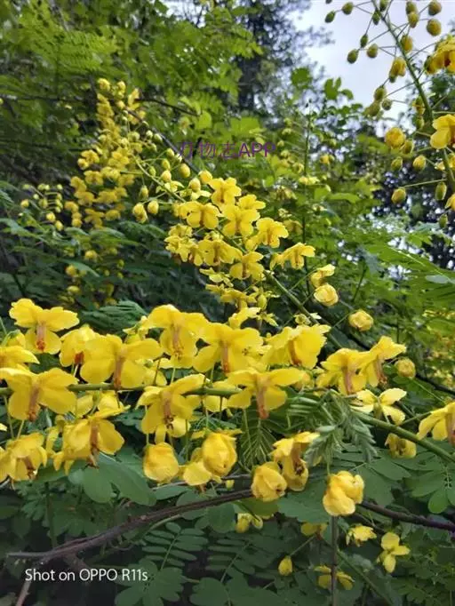 云实又名云英,草云母,臭草,羊石子草,老虎刺尖,杉刺,水皂角,虎头刺,倒挂刺,阎王刺,爬墙刺,猫爪刺,斗米虫树,倒搭刺,山油皂,黄花刺。藤本;树皮暗红色;枝、叶轴和花序均被柔毛和钩刺。二回羽状复叶长20-30厘米;羽片3-10对,对生,具柄,基部有刺1对;小叶8-12对,膜质,长圆形,长10-25毫米,宽6-12毫米,两端近圆钝,两面均被短柔毛,老时渐无毛;托叶小,斜卵形,先端渐尖,早落。总状花序顶生,直立,长15-30厘米,具多花;总花梗多刺;花梗长3-4厘米,被毛,在花萼下具关节,故花易脱落;萼片5,长圆形,被短柔毛;花瓣黄色,膜质,圆形或倒卵形,长10-12毫米,盛开时反卷,基部具短柄;雄蕊与花瓣近等长,花丝基部扁平,下部被绵毛;子房无毛。荚果长圆状舌形,长6-12厘米,宽2.5-3厘米,脆革质,栗褐色,无毛,有光泽,沿腹缝线膨胀成狭翅,成熟时沿腹缝线开裂,先端具尖喙;种子6-9颗,椭圆状,长约11毫米,宽约6毫米,种皮棕色。花果期4-10月。