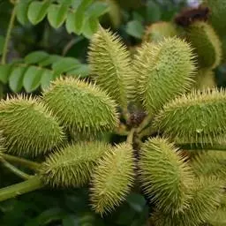 种子长圆形,长约1cm,宽约6mm。外皮棕黑色,有纵向灰黄色纹理及横向裂缝状环圈。种皮坚硬,剥开后,内有棕黄色子叶2枚。气微,味苦。