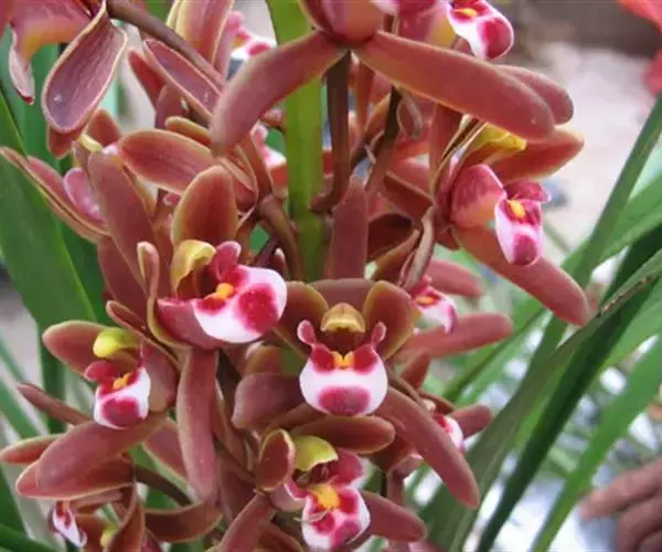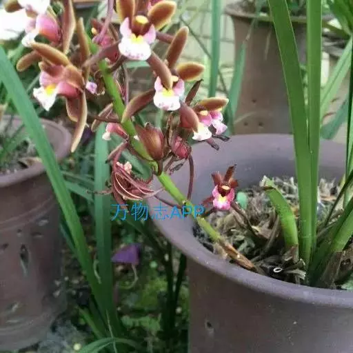 变种: 变种:台兰 台兰(Cymbidium floribundum var.pumilum),又称小蜜蜂兰、蒲兰、金棱边、蜂子兰、串兰、方兰。台兰与原种多花兰甚相似,但较矮小,叶片短而窄,假鳞茎也较小。叶片光亮,叶脉也不像多花兰那样明显。花茎长15~30厘米,直立或向斜上方生长,挺直,有花15~40朵,花稍小,红褐色,无香味。花期4~5月份。中国栽培较普及,在日本栽培较多。分布于浙江、福建、广东、广西、湖北、湖南、江西、四川、云南、贵州等省区。