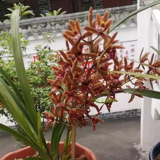 寒兰是兰科兰属的地生草本植物。茎为椭圆形;叶呈带状,尾部修长渐尖,叶脉较明显;每秆花枝开5-12朵,…