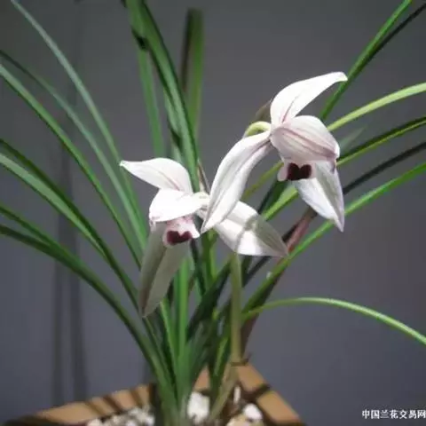 建兰素花,绿白色,清香,一枝开花5至12朵。叶色钢青,细而挺拔,有铮铮铁骨之相,所以叫铁骨素。在日…