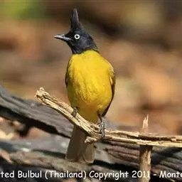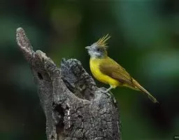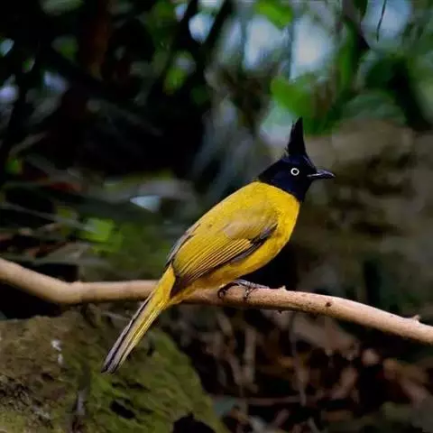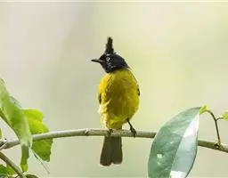 黑冠黄鹎:体长18-21厘米,是一种中等体型偏黄色鹎。整个头、颈、颏、喉黑色,头顶有显著直立的羽冠,…