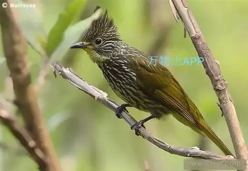 纹喉鹎:体长19厘米,是一种中等体型的偏绿色鹎。特征为头顶、脸颊、颏及喉均具黄色条纹。上体橄榄绿色。…