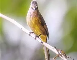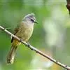 黄绿鹎,小型鸟类,体长19-22厘米。额至头顶暗褐具灰色羽缘,眼先黑色,…