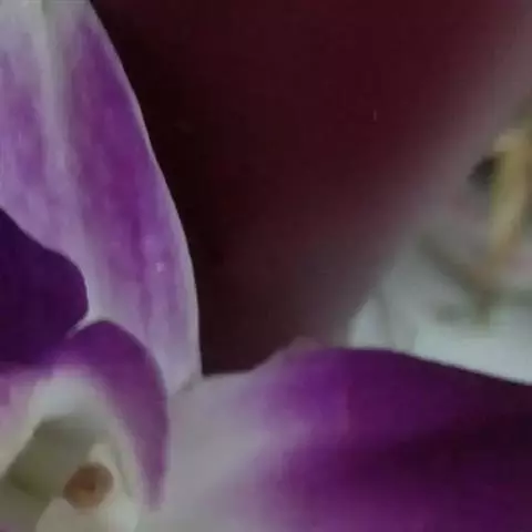 花瓣卵状椭圆形,长1.5厘米,宽9毫米,先端稍钝,具4条脉;唇瓣的颜色比萼片和花瓣深,近肾形,长2厘米,宽2.5厘米,先端微凹,基部两侧围抱蕊柱并且两侧具紫红色条纹,边缘波状,两面密被短柔毛;蕊柱金黄色,长约4毫米;药帽多少呈塔状,前端边缘近截形并且有缺刻;药床宽阔,其两侧上缘具不整齐的细缺刻。花期3-5月。