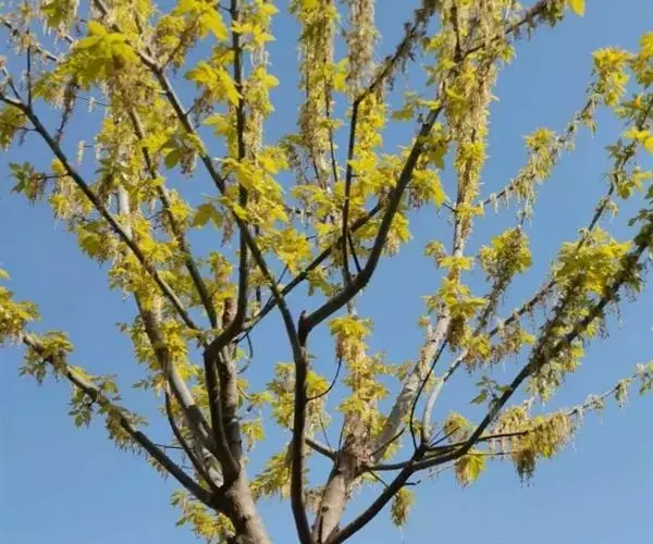 梣叶槭(学名:Acer negundo L.)是槭树科槭属植物,落叶乔木,高可达20米。树皮黄褐色或灰褐色。小枝圆柱形,冬芽小,鳞片镊合状排列。羽状复叶,小叶纸质,卵形或椭圆状披针形,叶片上面深绿色,无毛,下面淡绿色,叶柄稀疏的短柔毛淇后无毛。雄花的花序聚伞状,雌花的花序总状,小枝旁边生出,花小,黄绿色,开于叶前,雌雄异株,花丝很长,子房无毛。小坚果凸起,4-5月开花,9月结果。