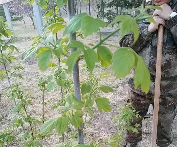 一般播种后5至7天即可出苗,约60%的种子出苗后揭去草帘,保持土壤湿润。当苗高10厘米左右时进行间苗、定苗,每平方米保留150至200株小苗。定苗后,7至10天进行一次叶面喷肥,用0.3%至0.5%的尿素融化成水溶液喷洒。入秋后增施磷钾肥,防止苗木徒长,同时要及时进行浇水、中耕、除草以及病虫害的防治。入冬前浇一次封冻水。