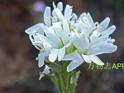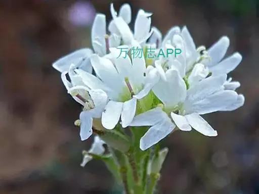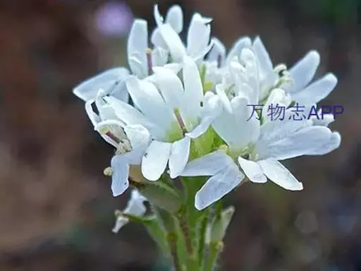 团扇荠(5张) 二年生草本,高20-60(-80)厘米,被分枝毛。叶与果瓣上毛略呈贴伏状,并杂有一些长单毛。茎不分枝,或于中、上部分枝。基生叶早枯,茎生叶向上渐小,下部叶长圆形,长4-6厘米,宽8-15毫米,顶端钝圆或略尖,基部渐窄成柄,边缘具不明显的波状齿或齿,上部叶长圆形,长约1厘米,宽1-2毫米,顶端渐尖,基部楔形,边缘有不明显的齿。花序伞房状,果期伸长,花梗长5-8毫米;萼片直立,长圆形,长2.7-3毫米,宽1-1.5毫米,边缘白色,外轮的基部略成囊状;花瓣白色,长5-8毫米,顶端2深裂,深达2毫米,为花瓣长的1/3-2/5,裂片顶端圆,花瓣下部1/3为爪;长雄蕊花丝扁,向基部变宽;短雄蕊花丝单侧具齿。短角果椭圆形,长约6毫米,宽3-5毫米,压扁或稍膨胀,无毛;花柱宿存,长3-3.5毫米,下部有星状毛,柱头头状,微2裂;果瓣扁平;果梗长7-9毫米,斜上升,或贴近果序轴。种子每室多粒,圆形,黑褐色。花期6-7月。