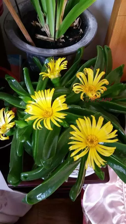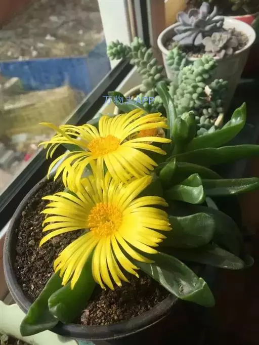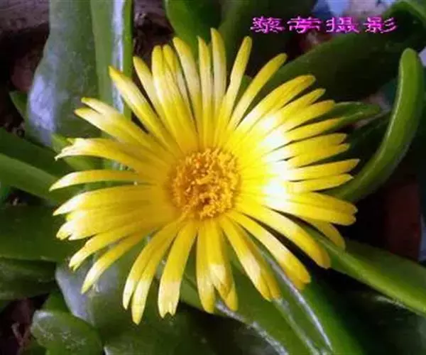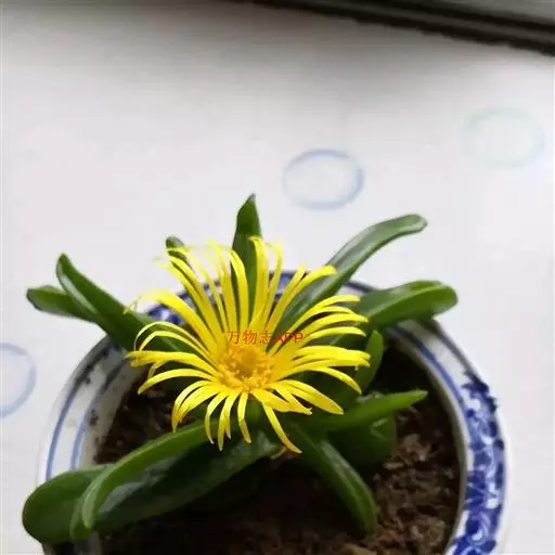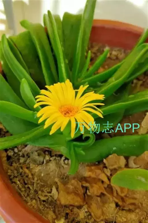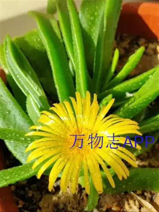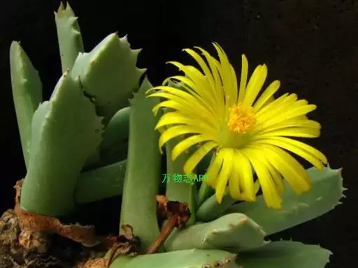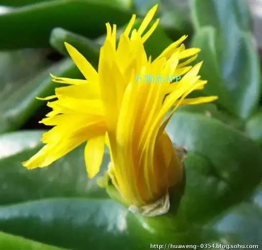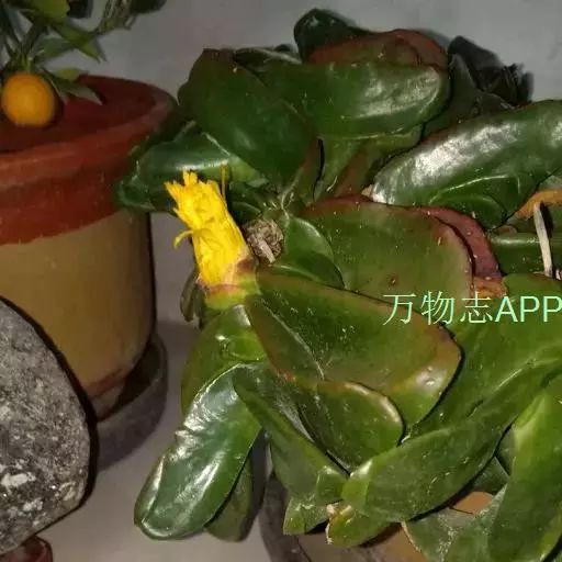 形态特征:茎短或无。叶肉质舌状,对生2裂,长约7CM,鲜绿色,平滑有光泽,叶端略向外反转。秋、冬开花,花自叶丛抽出,具短梗,金黄色。