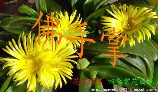 佛手掌,原产南非 佛手掌的花 ,世界各国多有栽培。为多年生肉质植物。喜冬季温暖,夏季凉爽干燥环境,生长适温18-22℃,超过30℃温度时,植株生长缓慢且呈半休眠状态。越冬温度须保持在10℃以上。宜于肥沃、排水良好的沙壤土生长。