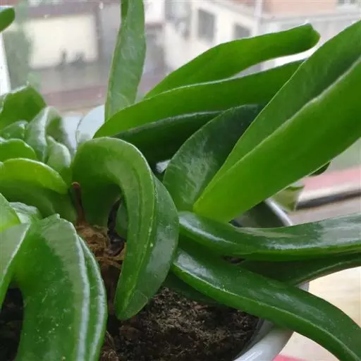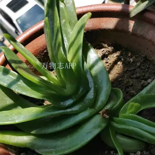 佛手掌为番杏科舌叶花属多肉类植物,学名为Glottiphyllumuncatum,因其肉质叶长6-12厘米,末端呈舌状稍卷曲,叶色鲜绿,叶面光洁透明,叶片紧抱轮生于短茎上,酷似佛手状而得名。