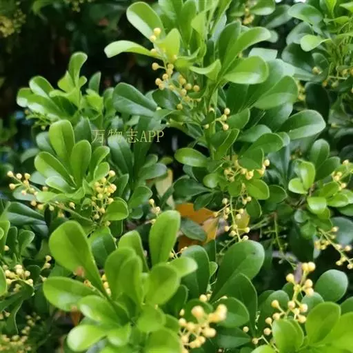 圆锥花序腋生,长5-10厘米,稍疏散无毛。花黄色,直径约2毫米,芳香。花萼5裂,裂片圆形。花冠5瓣,长圆形或近圆形,长1.5-2毫米,顶端圆而截平,比萼长。花药5,卵形,内藏。