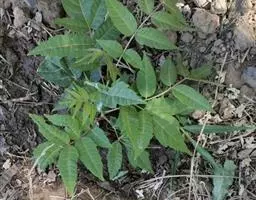 叶轴和叶柄具狭翅,有小叶3-5片;小叶对生,厚纸质,长2-7(-11)厘米,宽1-3.5(-5)厘米,顶端1片最大,下部的远较顶端的为小,先端钝,基部楔形,两面均无毛,侧脉每边约8条,极纤细,和网脉均于两面微凸起。