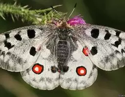 阿波罗绢蝶是欧洲最着名的产生地理变异的物种。 这种富有吸引力的蝴蝶栖息在整个欧洲和亚洲部分地区的山坡及山地草原中。它在不同的山区或山脉隔离形成大量不同的地方种群,其变异范围主要是黑纹的强度及红斑点的大小与数量。