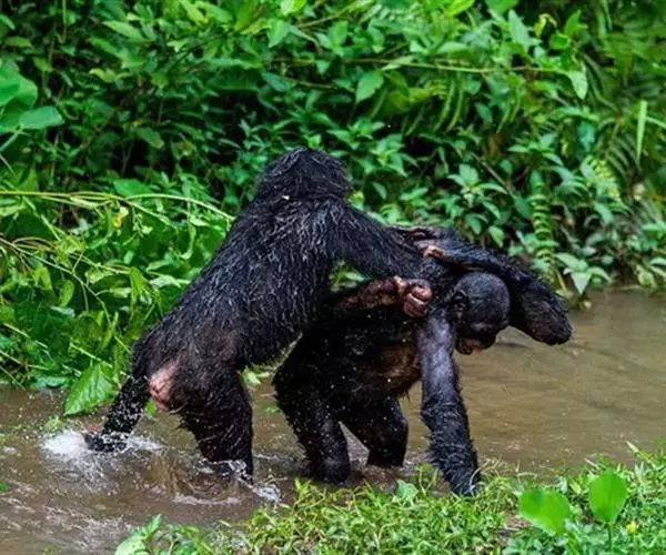 仔细观察就会发现,当有其他动物在场,特别是有敌对动物在场时,大猩猩多半会有这种举动。