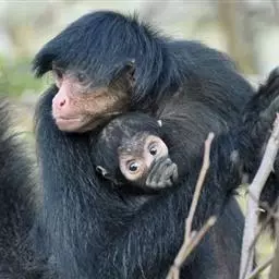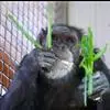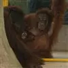 除红猩猩外,非洲的大猩猩,黑猩猩等也被人们称为猩猩,但这称呼是不准确的。(图为青岛动物园的青岛动物园猩猩馆内的一只黑猩猩和上海动物园内的大猩猩母子)