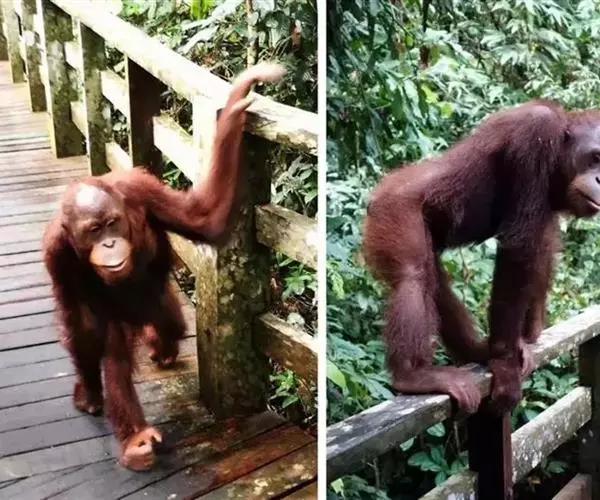 猩猩的种群受到了栖息地破坏的威胁,它们在过去还被随意捕捉到动物园或者卖作宠物。
