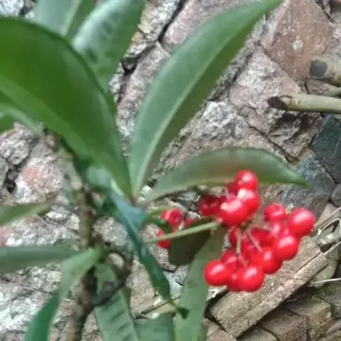 出自《本草图经》:百两金,叶似荔枝,初生背面俱青,结花实后,背紫面青。苗高二、三尺,有干如木,…