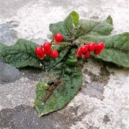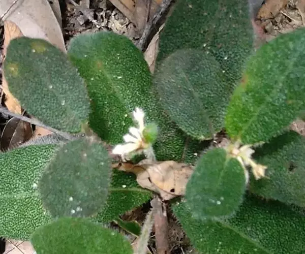 虎舌红 该种与莲座紫金牛相似,但该种植株较高,茎较长,叶面的毛基部隆起如小瘤,极易区别。该种有的个体全株为紫红色,有的则为绿色,故有红毛毡与白毛毡之称。