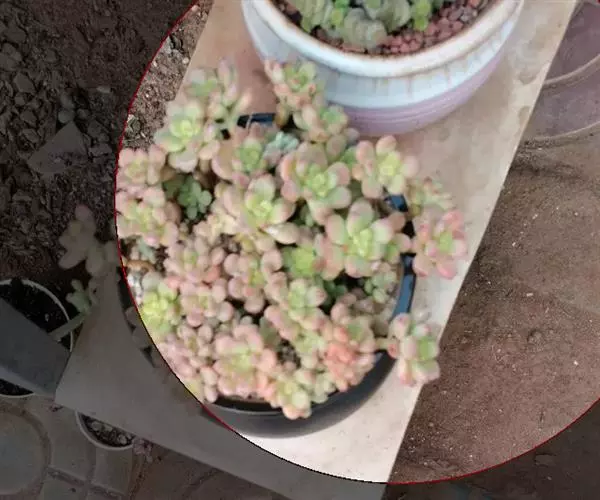 乔伊斯·塔洛克,多年生小型多肉草本植物。植株直立,易生侧芽,且侧芽多,常形成枝繁叶茂的群生株。叶子匙形,或舟形,叶面较平滑,中间略凹陷,叶背面凸起,龙骨不明显,交互对生或轮生,叶端钝,无小尖,全叶披毫毛。5-10月,一般以绿为叶的主色调,叶缘稍有红晕;11月至翌年4月,叶的基色调以红为主,在重组阳光、大温差和排水良好介质的共同影响下叶片变红。花期4-5月,聚伞花序,开花5瓣,星形,外瓣粉色,内瓣白色,花梗红色。
