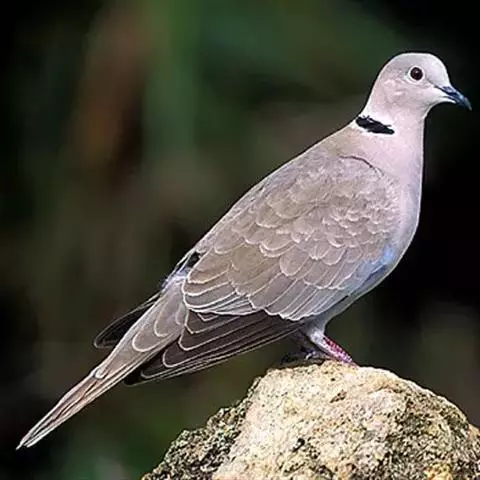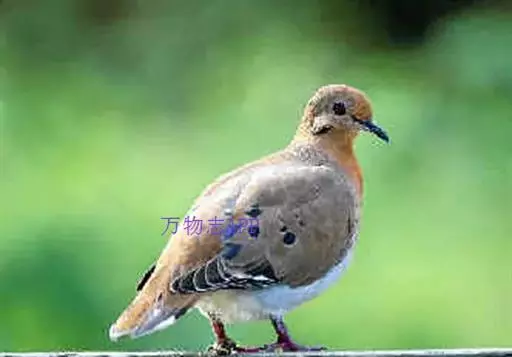 欧斑鸠体长27厘米,是一种体型略小的粉褐色斑鸠。颈侧具多黑白色细纹的斑块,翼覆羽深褐,…