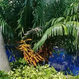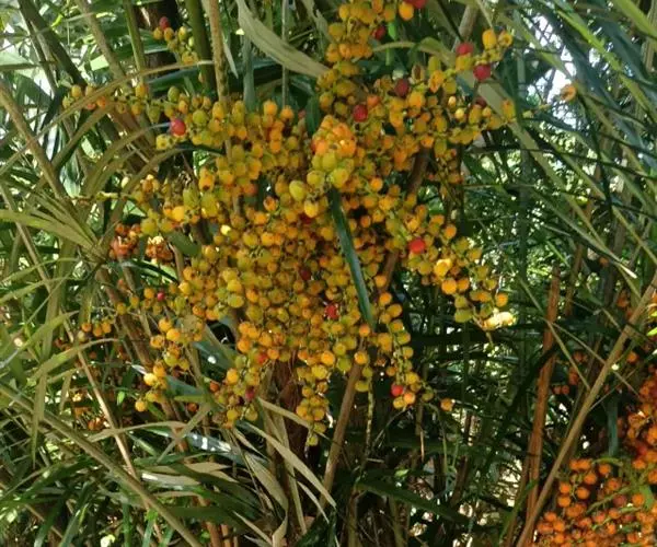 山棕叶羽状、丛生,树型美丽,可用于庭院绿化、园林造景。其雄花芳香,果实颜色鲜艳,挂果期长。因此,也是理想的观花、观果植物。