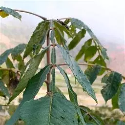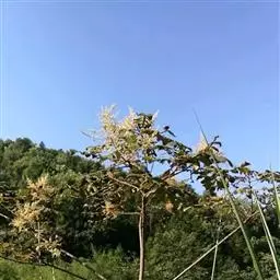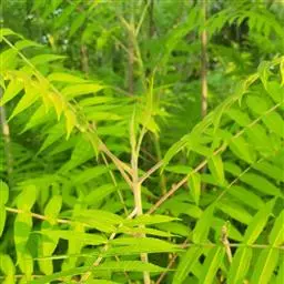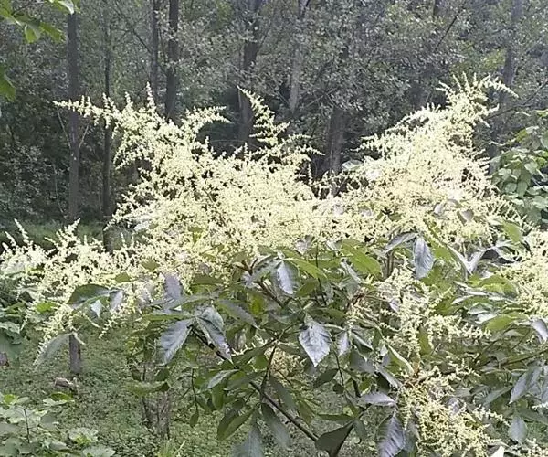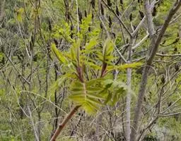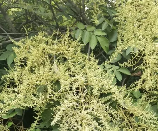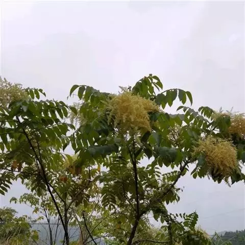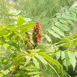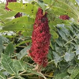 盐麸木(学名:Rhus chinensis Mill.),漆树科盐麸木属落叶小乔木植物。高达10米,小枝棕褐色,叶片多形,基部圆形,叶面暗绿色,叶背粉绿色,无柄。圆锥花序宽大,多分枝,雌花序较短,密柔毛;苞片花白色,花瓣长圆形,开花时外卷;核果球形,成熟时红色。8—9月开花,10月结果。盐麸木可以吸收土壤中的盐分,并将其以盐水的形式分泌出,待水分蒸发,盐分附着于树体上,因此得名。 盐麸木为广布物种,现分布于印度、日本等国。在中国除东北、内蒙古和新疆外,其余省区均有分布。喜光、喜温暖湿润气候,适应性强,耐寒。对土壤要求不严。生于中高海拔的向阳山坡、沟谷等疏林或灌丛中。盐麸木有种子繁殖和压根、扦插方式。《日华子诸家本草》《本草纲目》记载盐麸木可“生津降火,化痰,润肺滋肾,消毒,止痢收汗”。盐麸木鲜嫩茎叶中富含氮、磷酸等,且茎叶柔软多汁易腐烂分解,是一种很好的绿肥。另外,盐麸木的嫩茎叶可作为野生