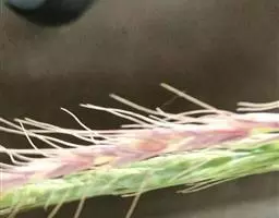 穗状花序直立,较紧密,长14-18厘米,宽5-10毫米;穗轴边缘具小纤毛,中部各节具2小穗而接近顶端和基部各节只具1小穗;小穗绿色,成熟后变为草黄色,长10-15毫米,含3-5小花;颖披针形或线状披针形,长8-10毫米,先端长达5毫米的短芒,有3-5明显而粗糙的脉;外稃披针形,上部具5条明显的脉,全部密生短小糙毛,第一外稃长9毫米,先端延伸成芒,芒粗糙,长10-20毫米,成熟后向外展开;内稃与外稃等长,先端截平,脊上具纤毛,至基部渐不明显,脊间被稀少短毛。