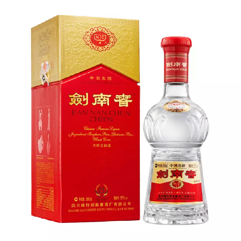 剑南春是中国传统名酒,产于四川省绵竹市,因绵竹在唐代属剑南道,故称“剑南春”。