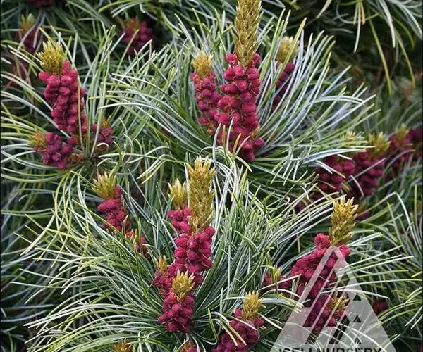 灌木,高达3-6米,树干通常伏卧状,基部多分枝,旬伏的大枝可长达10米或更长,生于山顶则近直立丛生状;树皮灰褐色,裂成片状脱落;一年生枝褐色,密被柔毛,二、三年生枝暗红褐色;冬芽红褐色,圆锥状卵圆形,先端尖,微被树脂。针叶5针一束,较细短,硬直而微弯,长4-6厘米,稀长至8.3厘米,径约1毫米,边缘锯齿不明显或近全缘,背面无气孔线,腹面每侧具3-6条灰白色气孔线;横切面近梯形,皮下层细胞单层,稀有1-3个细胞宽的第二层皮下层,树脂道通常2个,生于背面,很少1个,腹面无树脂道;叶鞘早落。