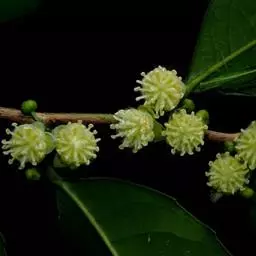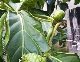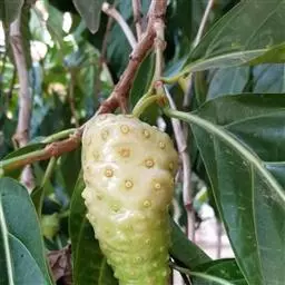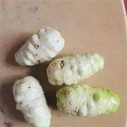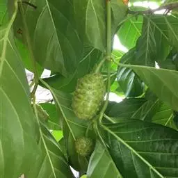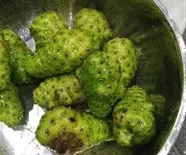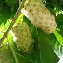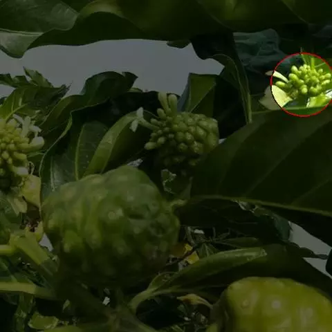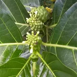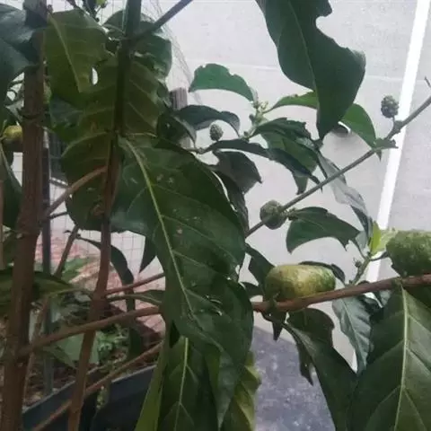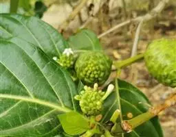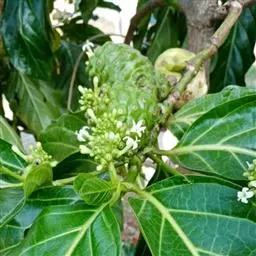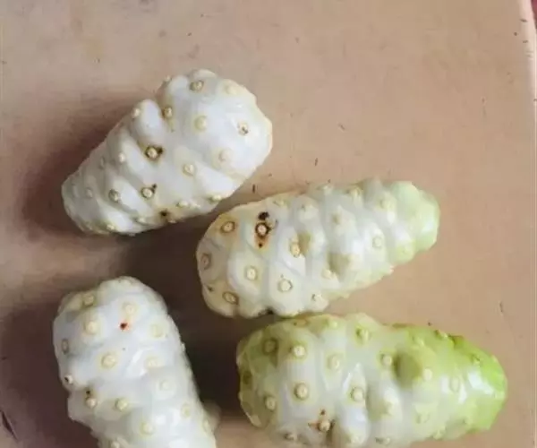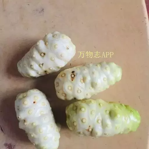 灌木至小乔木, 高1-5米; 茎直, 枝近四棱柱形。叶交互对生, 长圆形、椭圆形或卵圆形,长12-25厘米,两端渐尖或急尖,通常具光泽,无毛,全缘;叶脉两面凸起,中脉上面中央具一凹槽,侧脉每侧6(-5或7)条,下面脉腋密被短束毛;叶柄长5-20毫米;托叶生叶柄间,每侧1枚,宽,上部扩大呈半圆形,全缘,无毛。头状花序每隔一节一个,与叶对生,具长约1-1.5厘米的花序梗;花多数,无梗;萼管彼此间多少粘合,萼檐近截平;花冠白色,漏斗形,长约1.5厘米,喉部密被长柔毛,顶部5裂,裂片卵状披针形,长约6毫米;雄蕊5,罕4或6,着生花冠喉部,花丝长约3毫米,花药内向,上半部露出冠口,线形,背面中部着生,长约3毫米,二室,纵裂;花柱约与冠管等长,由下向上稍扩大,顶二裂,裂片线形,略叉开,子房4室,有时有1-2室不育,每室具胚珠1颗,胚珠略扁,其形状随着生部位不同而各异,通常圆形,长圆形或椭圆形,或其他形,横生,下垂或不下垂。果柄长约2厘米;聚花核果浆果状,卵形,幼时绿色,熟时白色约如初生鸡蛋大,径约2.5厘米,每核果具分核4(-2或3),分核倒卵形,稍内弯,坚纸质,具二室,上侧室大而空,下侧室狭,具1种子;种子小,扁,长圆形,下部有翅;胚直,胚根下位,子叶长圆形;胚乳丰富,质脆。花果期全年。