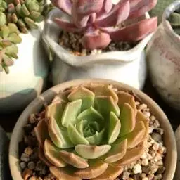 大和锦是景天科拟石莲花属的多肉植物。肉质叶排成紧密的莲座状,广卵形至散三角卵形,背面突起呈龙骨状,…