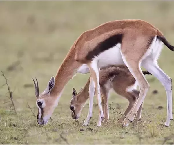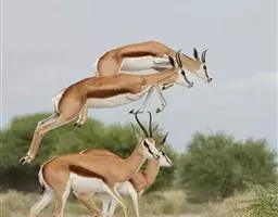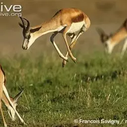 汤普森瞪羚(Gazelle thomsonii)是一个很好的例子,肩高60-80厘米,毛色为棕色和白色,身体两侧有一条黑线。雄性的角又长又弯。当瞪羚受惊吓时,瞪羚先是不紧不慢跑,然后突然跳得很高。这种行为是由阿默兹·扎哈维在研究瞪羚时发现的。