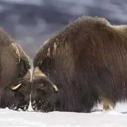 麝牛,是偶蹄目牛科麝牛属哺乳动物。麝牛体型大,但低矮粗壮,头大,吻部宽,眼小;雌雄均具角,四肢短粗,…
