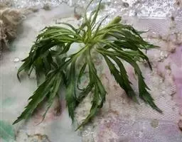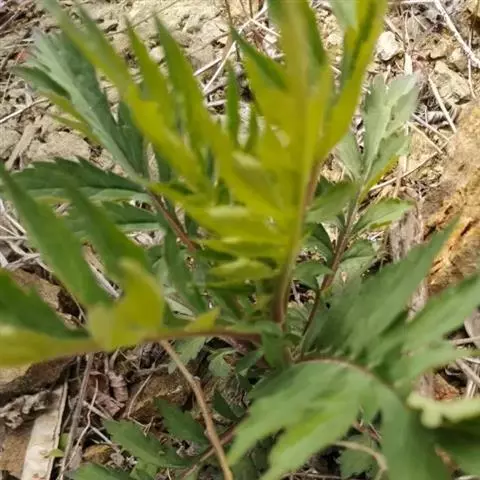 性状鉴别:茎圆柱形,上部多分枝,长30-80cm,直径0.2-0.6cm,表面黄绿色或棕黄色,具纵棱线;质略硬,易折断,断面中部有髓。叶互生,暗绿色或棕绿色,卷缩,碎,完整者展平后为三回羽状深裂,裂片及小裂片矩圆形或长椭圆形,两面被短毛。气香特异,味微苦。以色绿、叶多、香气浓者为佳。