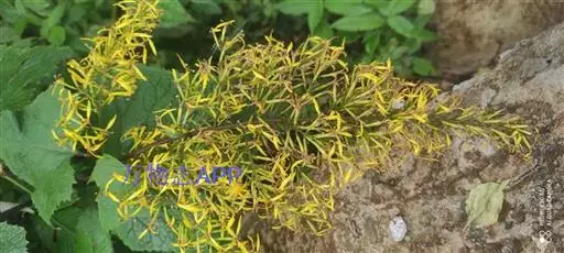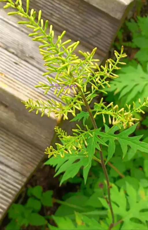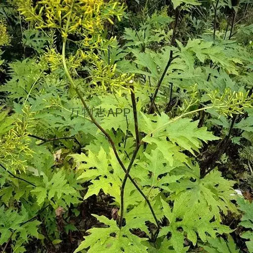 形态特征:根状茎块状,径1—1.5厘米,具多数纤维状根。茎粗壮,中空,高50—100厘米,基部径5—6毫米, 不分枝,幼时被疏蛛丝状毛,或基部无毛,上部被褐色腺状短柔毛。叶具柄,下部茎叶花期常脱落,中部叶片厚纸质,卵形或卵状心形长10—16厘米,宽10—15厘米,顶端具小尖,羽状深裂,每边各有侧裂片3—4,侧裂片近对生,狭至宽长圆形,顶端具小尖,边缘常具数个小尖齿,基部截形或浅心形,上面深绿色,被疏贴生短硬毛,下面浅绿色,至少沿脉被短柔毛及疏蛛丝状毛,具明显羽状脉;叶柄较粗壮,长3—6厘米,基部扩大且半抱茎,被疏短柔毛或近无毛;上部茎叶渐小,具短柄。头状花序小,多数常排成多分枝宽塔状复圆锥状,花序轴及花序梗被黄褐色腺状短柔毛;花序梗细,长2—3毫米,具2—3个线形渐尖的小苞片。总苞圆柱状,长8—10毫米,宽1—1.5毫米,总苞片5,线状长圆形,长约8毫米,宽1—1.5毫米,顶端钝,被微毛,边缘狭干膜质。舌状花2—3个,黄色,管部长4.5毫米,舌片长圆状披针形,长13—14毫米,宽2毫米,顶端具2小齿,具4条脉;管状花4,稀7,花冠黄色,长8—9毫米,管部长2--2.5毫米,檐部漏斗状,裂片长圆状卵形,长1.5毫米,顶端渐尖。花药长圆形,长3.5—3.7毫米,基部具短尾,附片长圆状渐尖;花柱分枝弯曲,长1.5毫米,顶端钝,被乳头状微毛。瘦果圆柱形,长约3毫米,无毛,具肋;冠毛糙毛状,白色,长7—8毫米。花期7—9月。