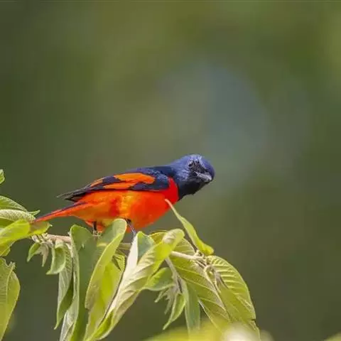 灰喉山椒鸟:共有8个亚种。体长18-22厘米。雄鸟头部和背亮黑色,腰、尾上覆羽和下体朱红色,…