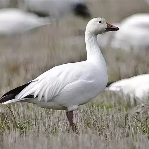 雪雁是鸭科雁属鸟类,雁属中体形大,个体重的鸟类。羽毛洁白,翼角黑色。飞行时双翼拍打用力,振翅频率高。…