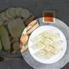 纯牛奶,白糖,鸡蛋,蜜豆,草莓、芒果等。
