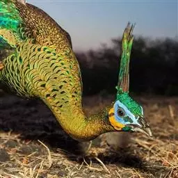 黑长尾雉大型鸡类,体长53~88厘米。雄较雌大。雄鸟通体紫蓝色,脸鲜红色,翅上有一条显著的白色翅斑…