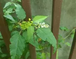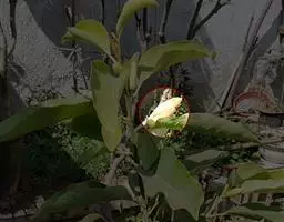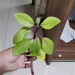 叶圆形或卵形,具不明显的波状缘。上面深绿色,有褐色斑纹,下面红褐色,有黑色小斑点。花黄色,径约10厘米。
